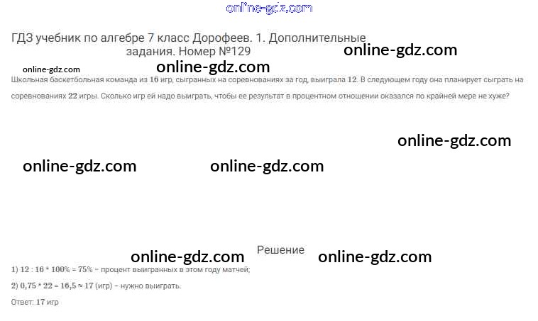 Готовые домашние задания по Алгебре за 7 класс Учебник Дорофеев, Суворова Академический школьный учебник 2020 - Упражнения 129