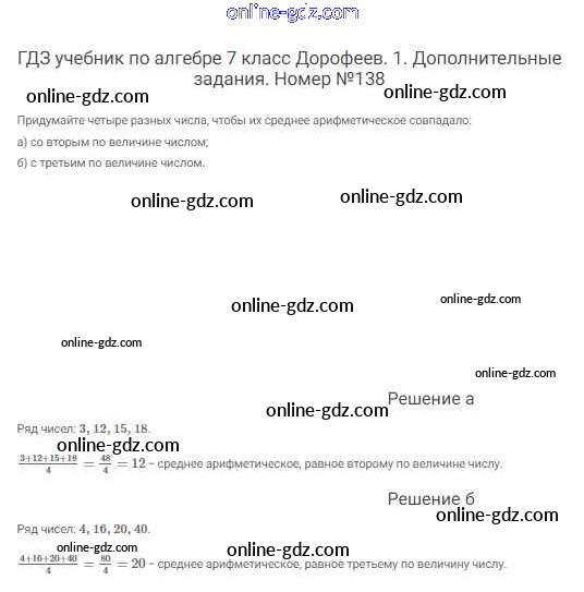 Готовые домашние задания по Алгебре за 7 класс Учебник Дорофеев, Суворова Академический школьный учебник 2020 - Упражнения 138