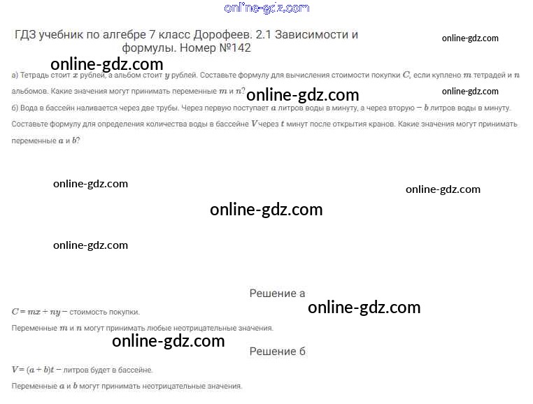 Готовые домашние задания по Алгебре за 7 класс Учебник Дорофеев, Суворова Академический школьный учебник 2020 - Упражнения 142