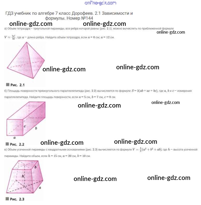 Готовые домашние задания по Алгебре за 7 класс Учебник Дорофеев, Суворова Академический школьный учебник 2020 - Упражнения 144