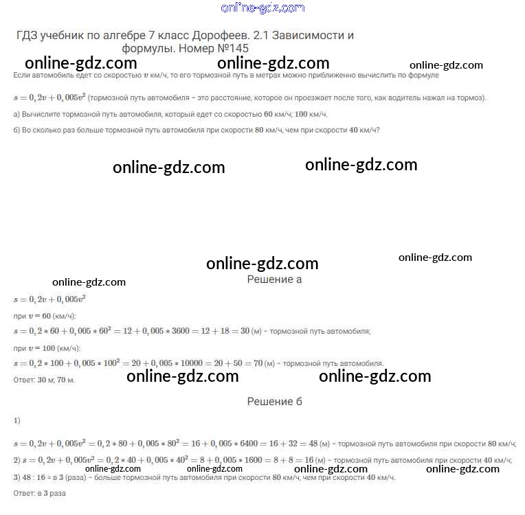 Готовые домашние задания по Алгебре за 7 класс Учебник Дорофеев, Суворова Академический школьный учебник 2020 - Упражнения 145