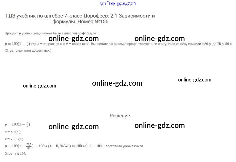 Готовые домашние задания по Алгебре за 7 класс Учебник Дорофеев, Суворова Академический школьный учебник 2020 - Упражнения 156