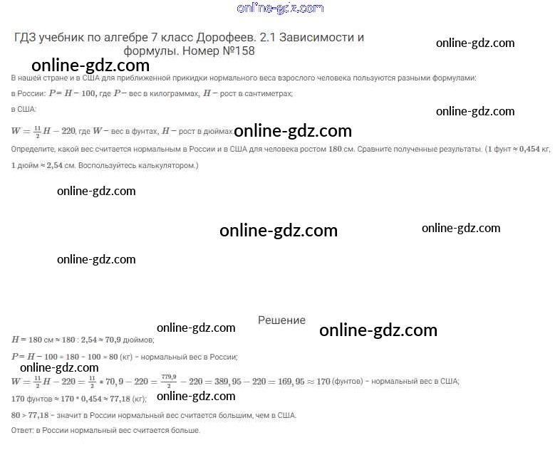 Готовые домашние задания по Алгебре за 7 класс Учебник Дорофеев, Суворова Академический школьный учебник 2020 - Упражнения 158