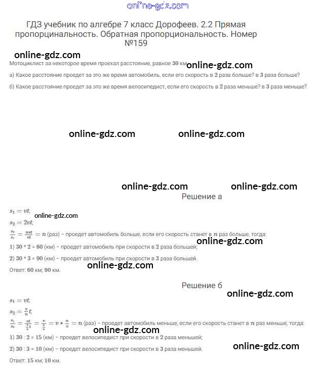 Готовые домашние задания по Алгебре за 7 класс Учебник Дорофеев, Суворова Академический школьный учебник 2020 - Упражнения 159