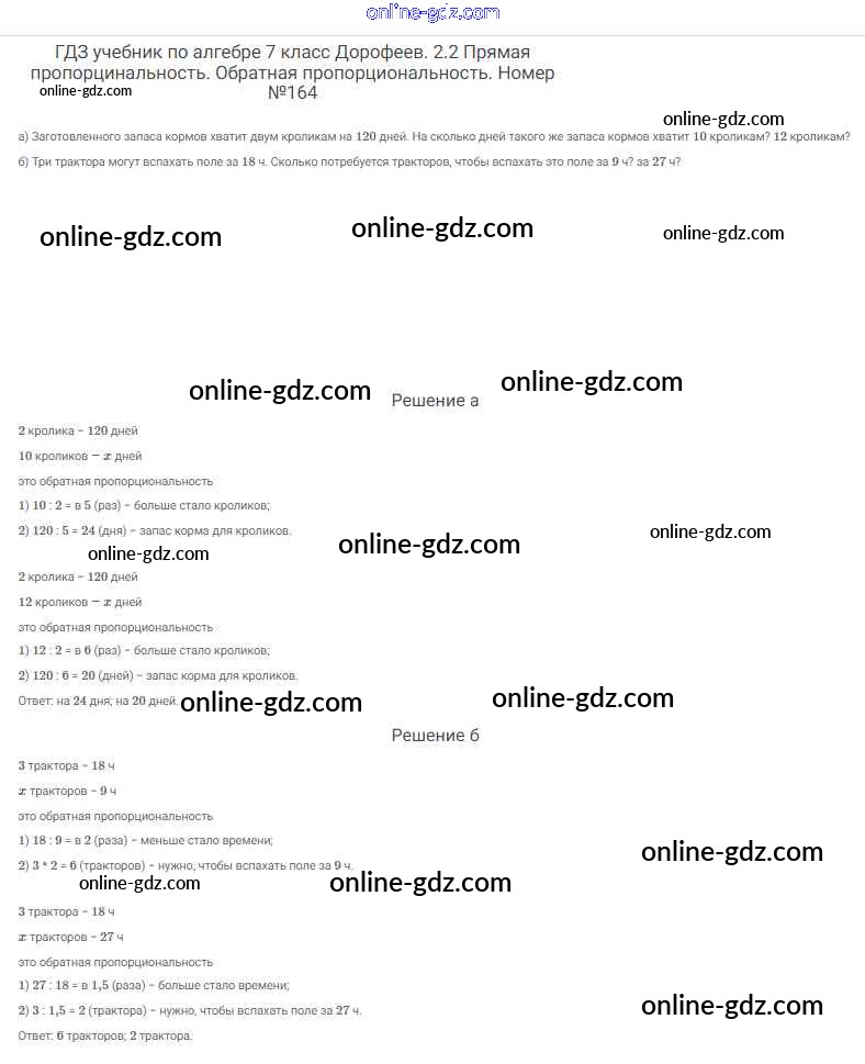 Готовые домашние задания по Алгебре за 7 класс Учебник Дорофеев, Суворова Академический школьный учебник 2020 - Упражнения 164