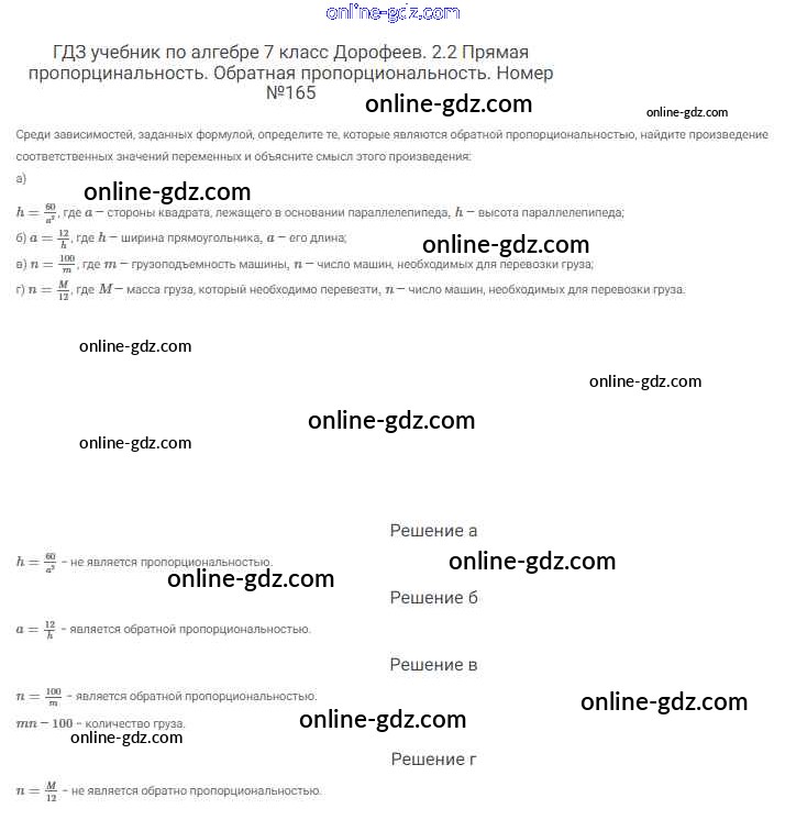 Готовые домашние задания по Алгебре за 7 класс Учебник Дорофеев, Суворова Академический школьный учебник 2020 - Упражнения 165