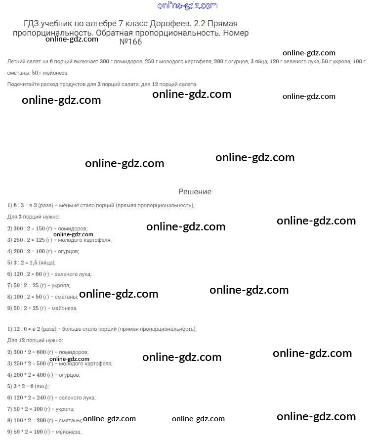 Готовые домашние задания по Алгебре за 7 класс Учебник Дорофеев, Суворова Академический школьный учебник 2020 - Упражнения 166