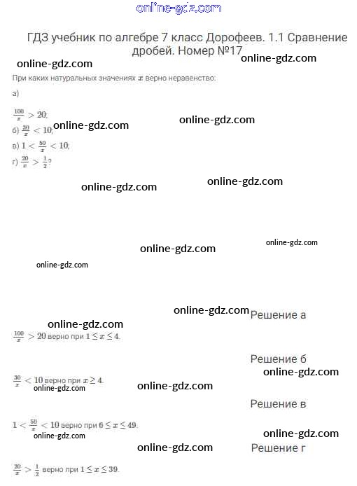 Готовые домашние задания по Алгебре за 7 класс Учебник Дорофеев, Суворова Академический школьный учебник 2020 - Упражнения 17