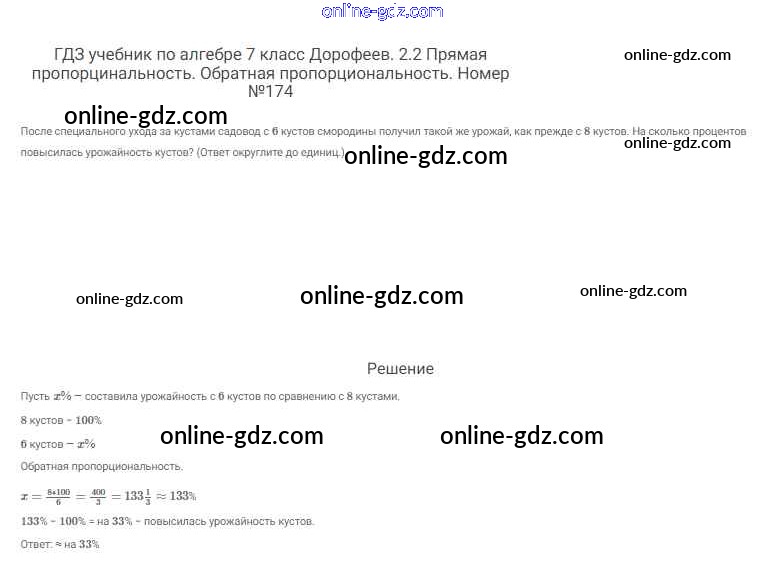 Готовые домашние задания по Алгебре за 7 класс Учебник Дорофеев, Суворова Академический школьный учебник 2020 - Упражнения 174