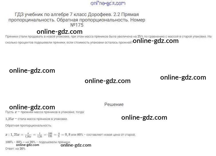 Готовые домашние задания по Алгебре за 7 класс Учебник Дорофеев, Суворова Академический школьный учебник 2020 - Упражнения 175