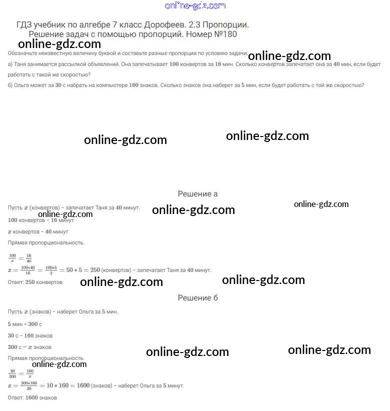 Готовые домашние задания по Алгебре за 7 класс Учебник Дорофеев, Суворова Академический школьный учебник 2020 - Упражнения 180