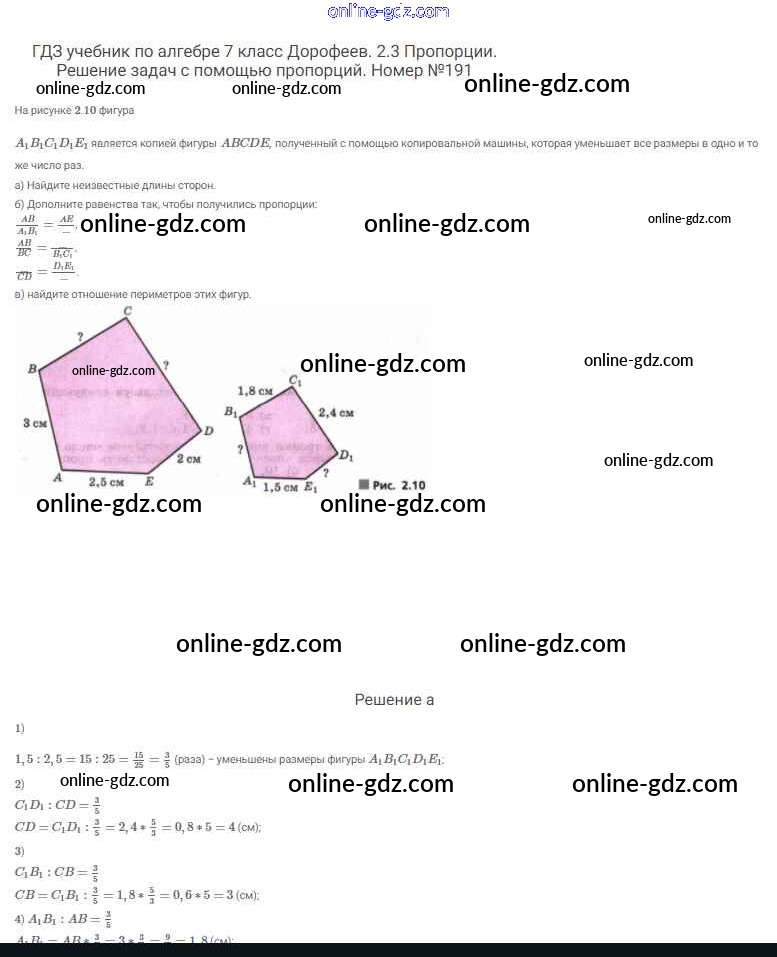 Готовые домашние задания по Алгебре за 7 класс Учебник Дорофеев, Суворова Академический школьный учебник 2020 - Упражнения 191