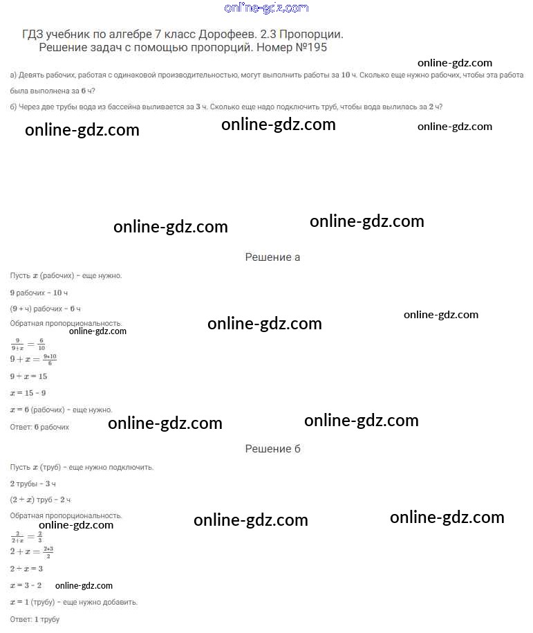 Готовые домашние задания по Алгебре за 7 класс Учебник Дорофеев, Суворова Академический школьный учебник 2020 - Упражнения 195