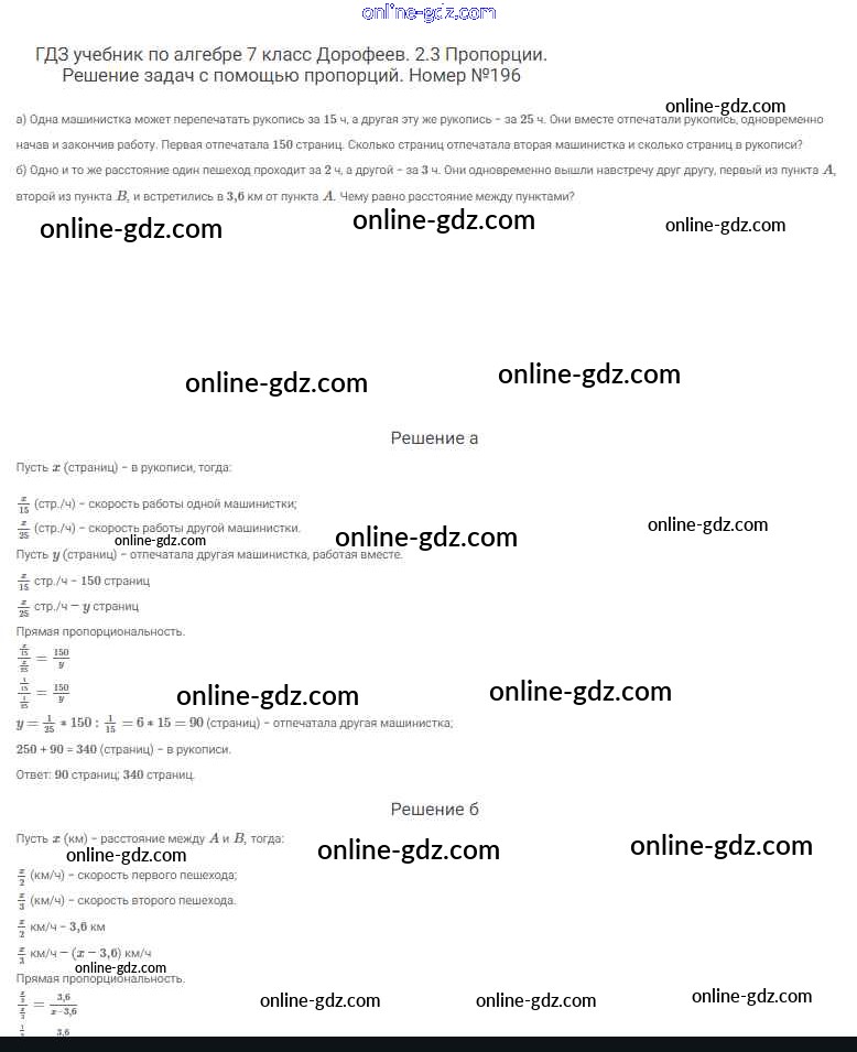 Готовые домашние задания по Алгебре за 7 класс Учебник Дорофеев, Суворова Академический школьный учебник 2020 - Упражнения 196