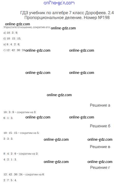 Готовые домашние задания по Алгебре за 7 класс Учебник Дорофеев, Суворова Академический школьный учебник 2020 - Упражнения 198