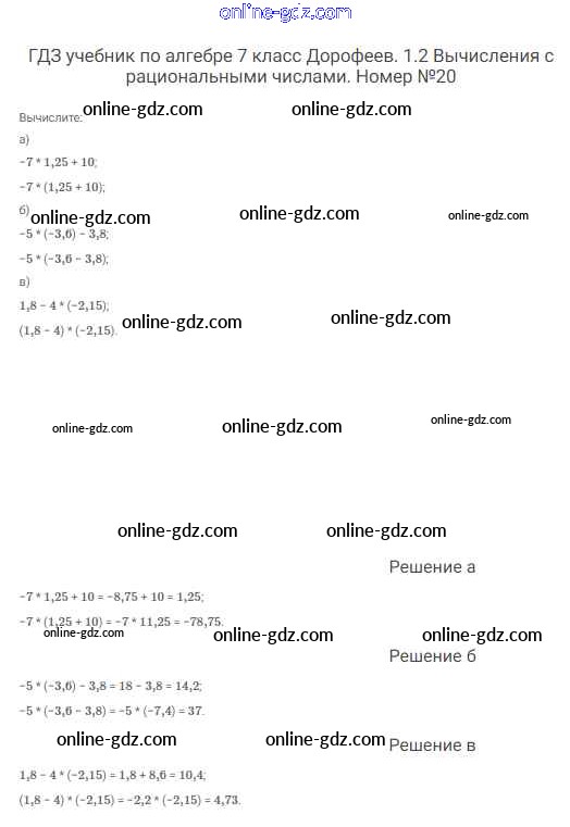 Готовые домашние задания по Алгебре за 7 класс Учебник Дорофеев, Суворова Академический школьный учебник 2020 - Упражнения 20
