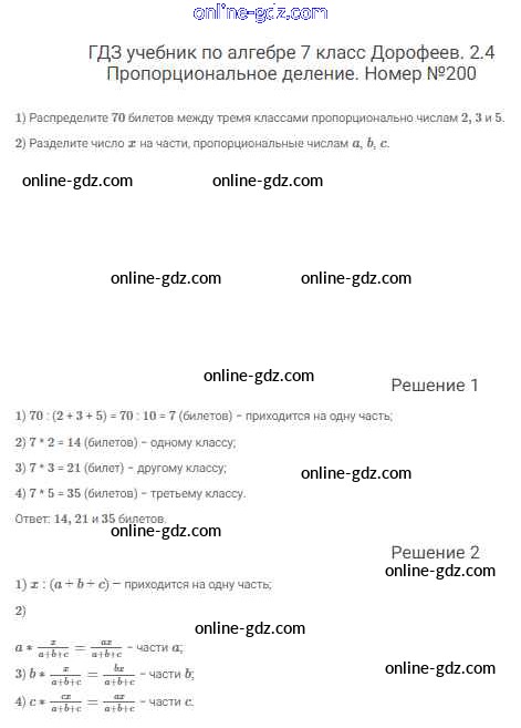 Готовые домашние задания по Алгебре за 7 класс Учебник Дорофеев, Суворова Академический школьный учебник 2020 - Упражнения 200