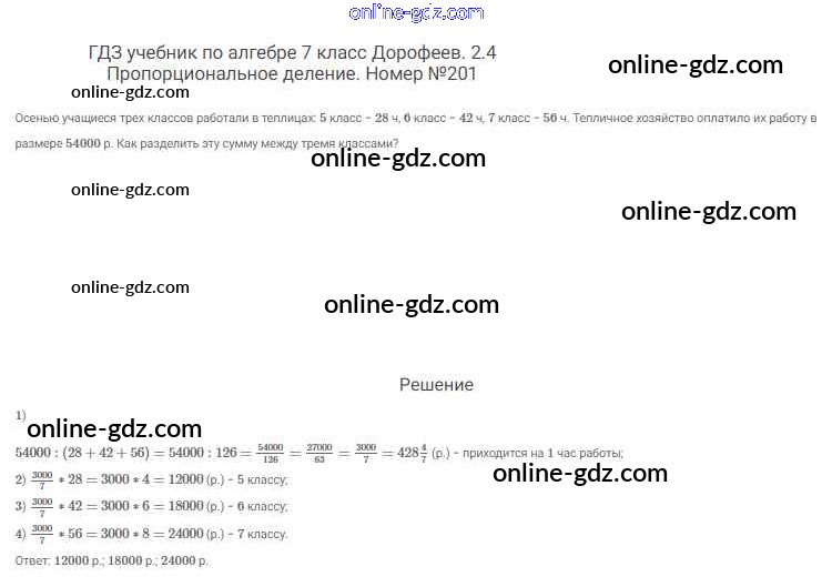 Готовые домашние задания по Алгебре за 7 класс Учебник Дорофеев, Суворова Академический школьный учебник 2020 - Упражнения 201