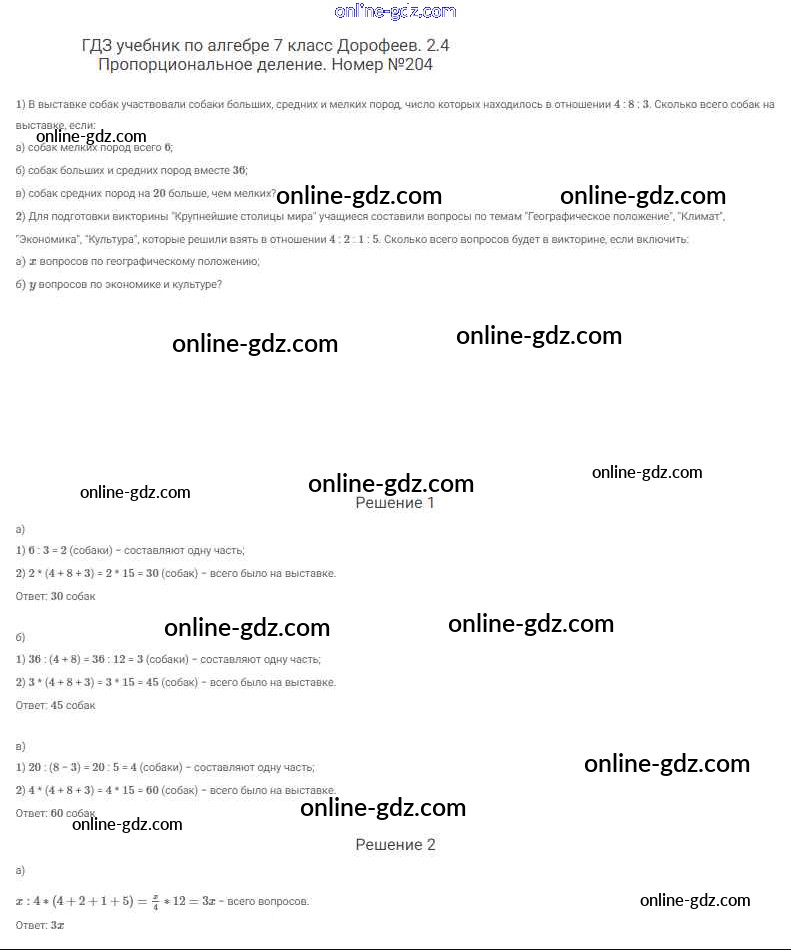 Готовые домашние задания по Алгебре за 7 класс Учебник Дорофеев, Суворова Академический школьный учебник 2020 - Упражнения 204