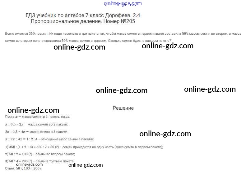 Готовые домашние задания по Алгебре за 7 класс Учебник Дорофеев, Суворова Академический школьный учебник 2020 - Упражнения 205