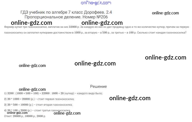 Готовые домашние задания по Алгебре за 7 класс Учебник Дорофеев, Суворова Академический школьный учебник 2020 - Упражнения 206