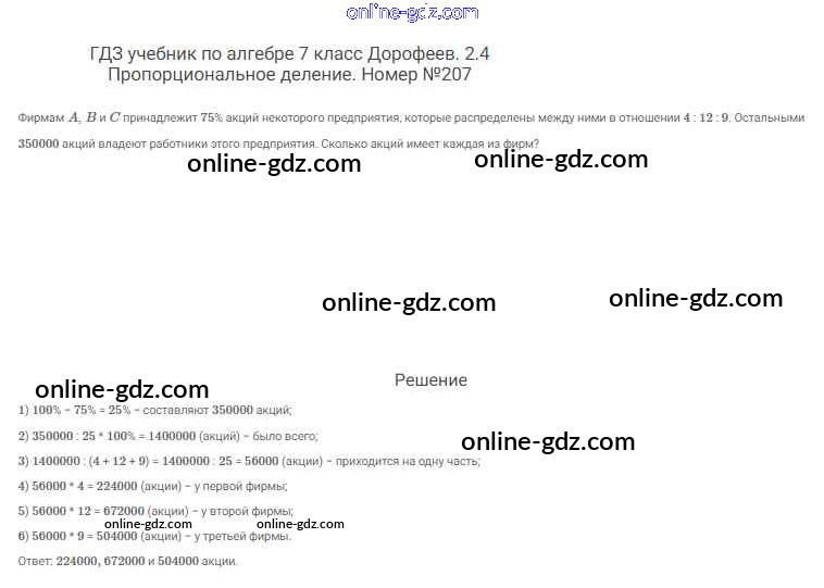 Готовые домашние задания по Алгебре за 7 класс Учебник Дорофеев, Суворова Академический школьный учебник 2020 - Упражнения 207