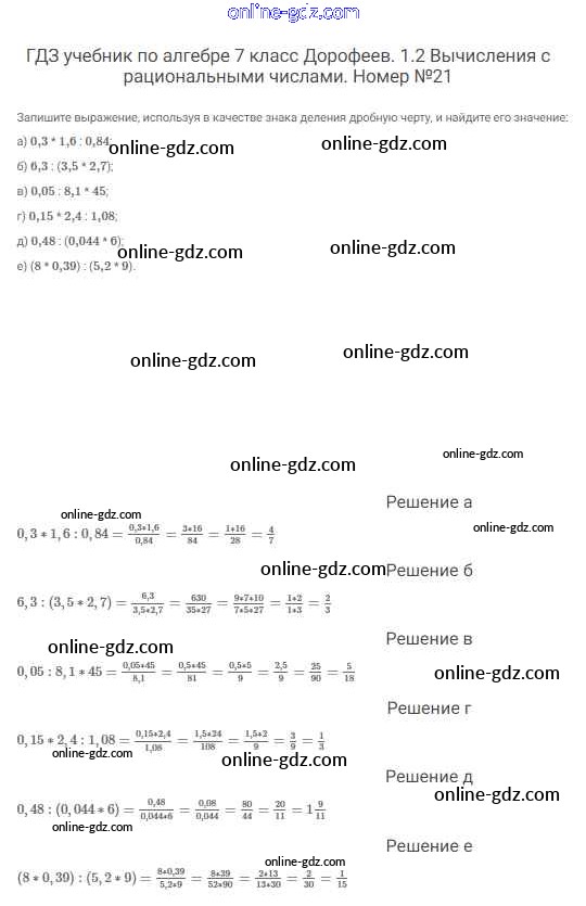 Готовые домашние задания по Алгебре за 7 класс Учебник Дорофеев, Суворова Академический школьный учебник 2020 - Упражнения 21
