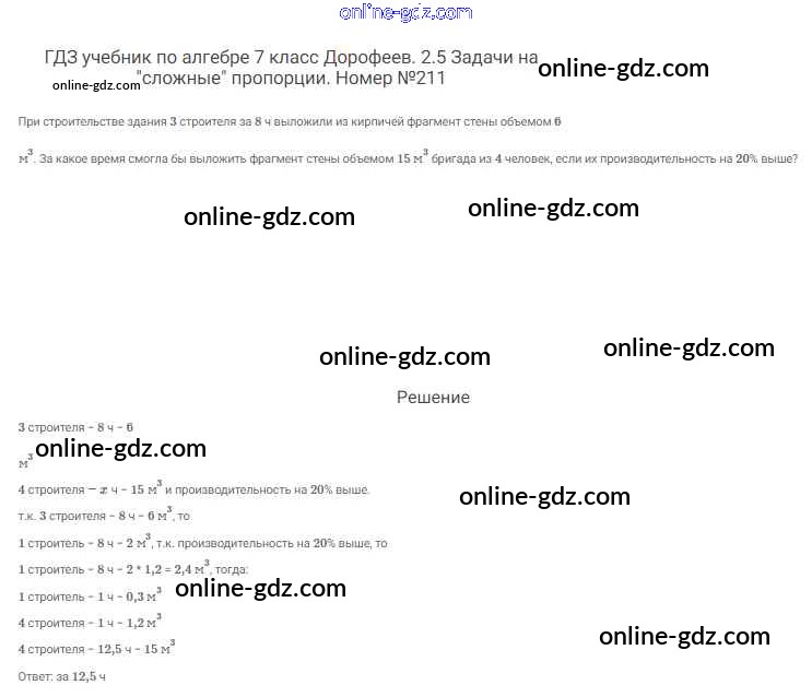 Готовые домашние задания по Алгебре за 7 класс Учебник Дорофеев, Суворова Академический школьный учебник 2020 - Упражнения 211