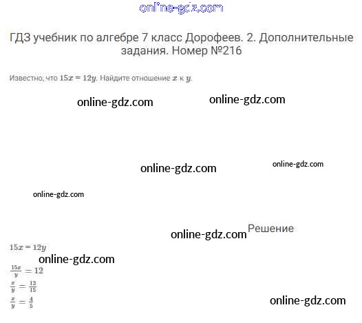 Готовые домашние задания по Алгебре за 7 класс Учебник Дорофеев, Суворова Академический школьный учебник 2020 - Упражнения 216