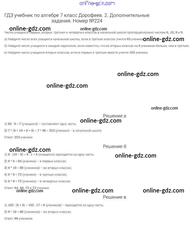 Готовые домашние задания по Алгебре за 7 класс Учебник Дорофеев, Суворова Академический школьный учебник 2020 - Упражнения 224