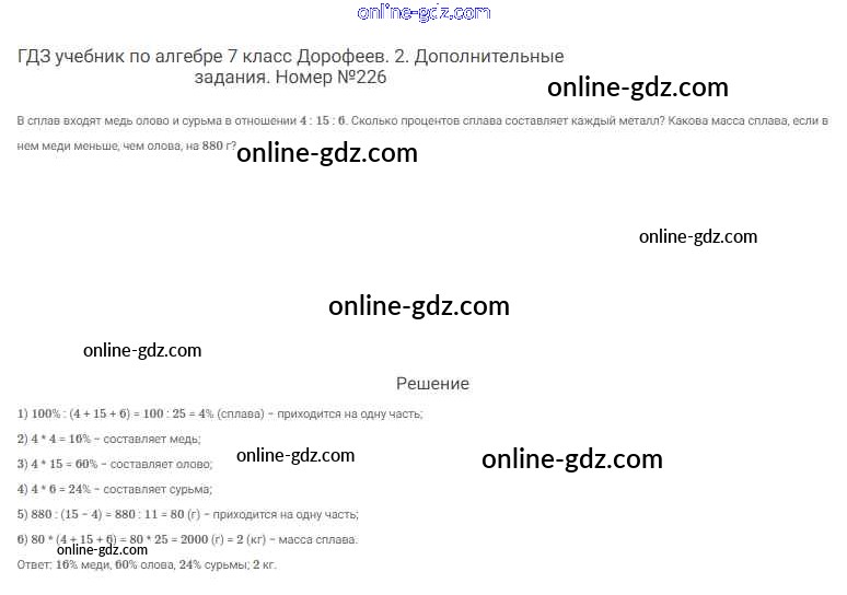 Готовые домашние задания по Алгебре за 7 класс Учебник Дорофеев, Суворова Академический школьный учебник 2020 - Упражнения 226