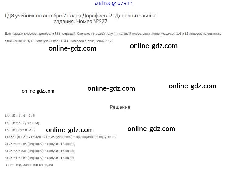 Готовые домашние задания по Алгебре за 7 класс Учебник Дорофеев, Суворова Академический школьный учебник 2020 - Упражнения 227