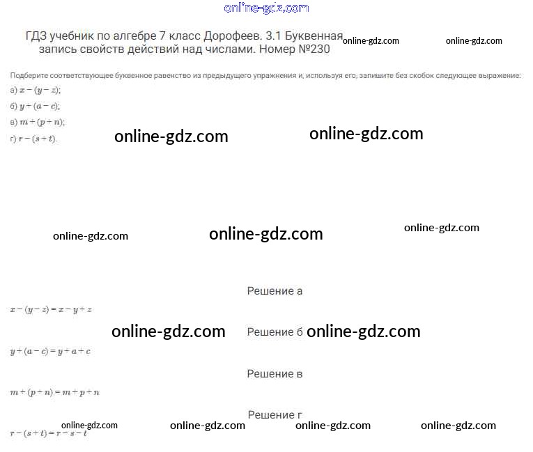 Готовые домашние задания по Алгебре за 7 класс Учебник Дорофеев, Суворова Академический школьный учебник 2020 - Упражнения 230