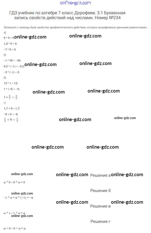 Готовые домашние задания по Алгебре за 7 класс Учебник Дорофеев, Суворова Академический школьный учебник 2020 - Упражнения 234
