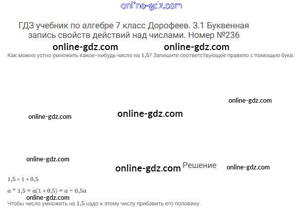 Готовые домашние задания по Алгебре за 7 класс Учебник Дорофеев, Суворова Академический школьный учебник 2020 - Упражнения 236