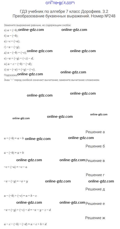 Готовые домашние задания по Алгебре за 7 класс Учебник Дорофеев, Суворова Академический школьный учебник 2020 - Упражнения 248