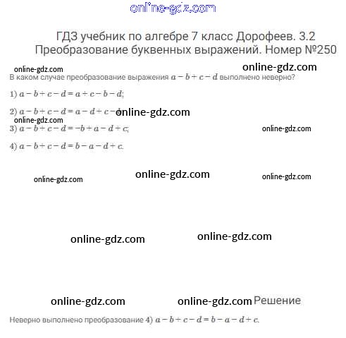 Готовые домашние задания по Алгебре за 7 класс Учебник Дорофеев, Суворова Академический школьный учебник 2020 - Упражнения 250