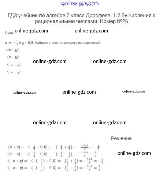 Готовые домашние задания по Алгебре за 7 класс Учебник Дорофеев, Суворова Академический школьный учебник 2020 - Упражнения 26