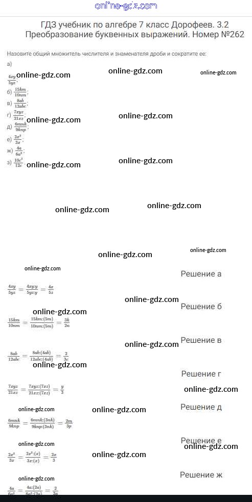 Готовые домашние задания по Алгебре за 7 класс Учебник Дорофеев, Суворова Академический школьный учебник 2020 - Упражнения 262