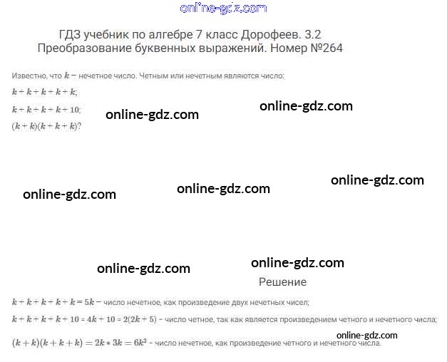 Готовые домашние задания по Алгебре за 7 класс Учебник Дорофеев, Суворова Академический школьный учебник 2020 - Упражнения 264