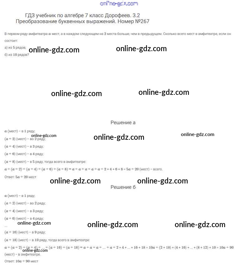 Готовые домашние задания по Алгебре за 7 класс Учебник Дорофеев, Суворова Академический школьный учебник 2020 - Упражнения 267