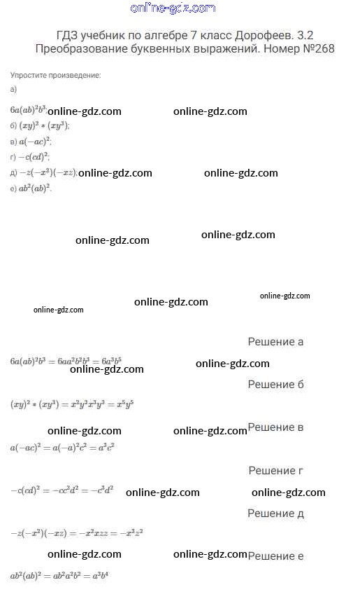 Готовые домашние задания по Алгебре за 7 класс Учебник Дорофеев, Суворова Академический школьный учебник 2020 - Упражнения 268