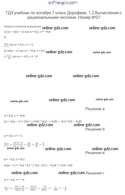 Готовые домашние задания по Алгебре за 7 класс Учебник Дорофеев, Суворова Академический школьный учебник 2020 - Упражнения 27