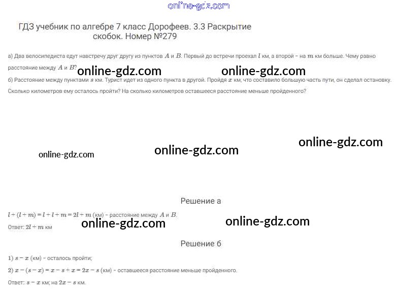 Готовые домашние задания по Алгебре за 7 класс Учебник Дорофеев, Суворова Академический школьный учебник 2020 - Упражнения 279