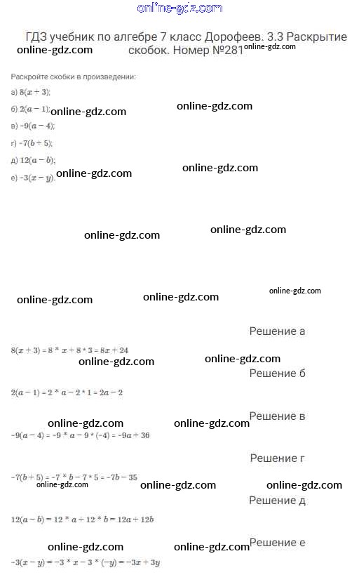 Готовые домашние задания по Алгебре за 7 класс Учебник Дорофеев, Суворова Академический школьный учебник 2020 - Упражнения 281