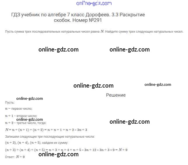 Готовые домашние задания по Алгебре за 7 класс Учебник Дорофеев, Суворова Академический школьный учебник 2020 - Упражнения 291