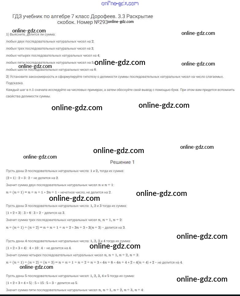 Готовые домашние задания по Алгебре за 7 класс Учебник Дорофеев, Суворова Академический школьный учебник 2020 - Упражнения 293