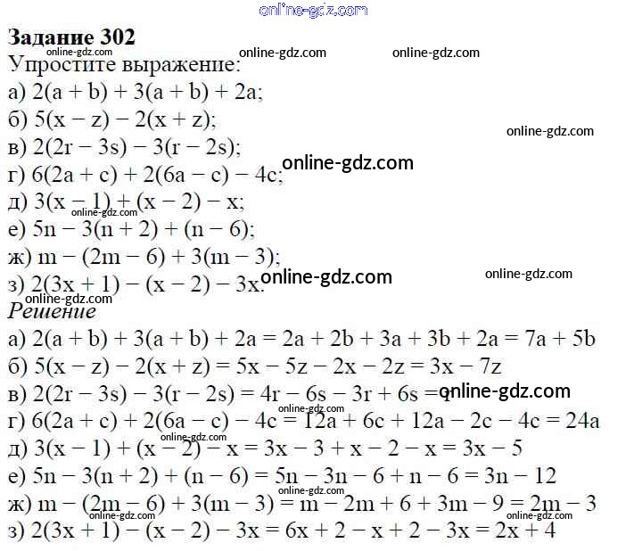 Готовые домашние задания по Алгебре за 7 класс Учебник Дорофеев, Суворова Академический школьный учебник 2020 - Упражнения 302