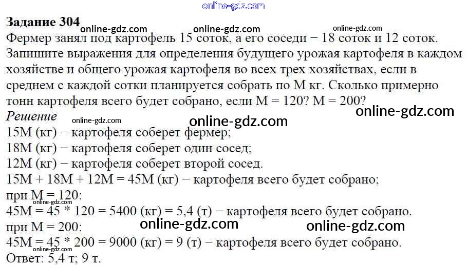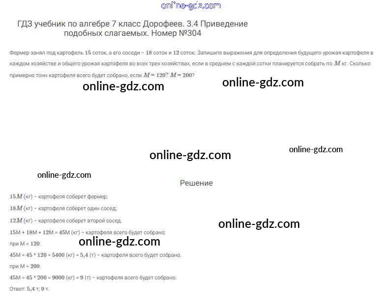 Готовые домашние задания по Алгебре за 7 класс Учебник Дорофеев, Суворова Академический школьный учебник 2020 - Упражнения 304