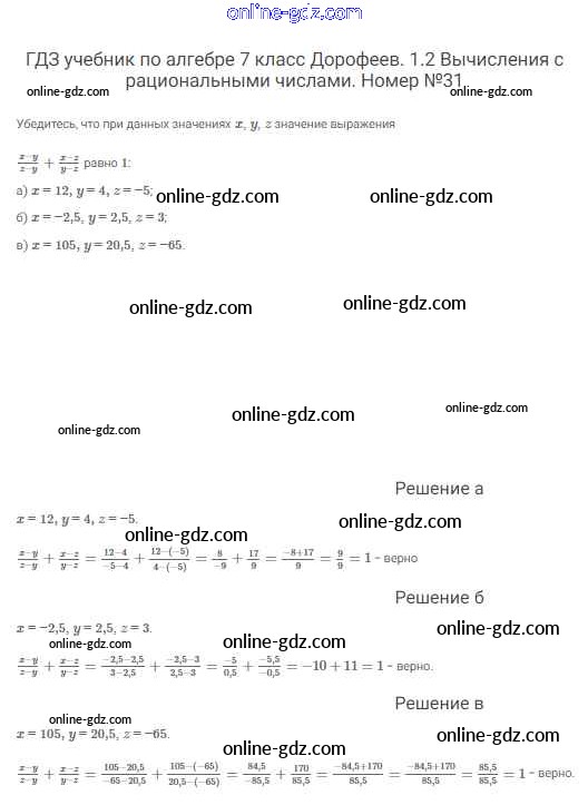 Готовые домашние задания по Алгебре за 7 класс Учебник Дорофеев, Суворова Академический школьный учебник 2020 - Упражнения 31